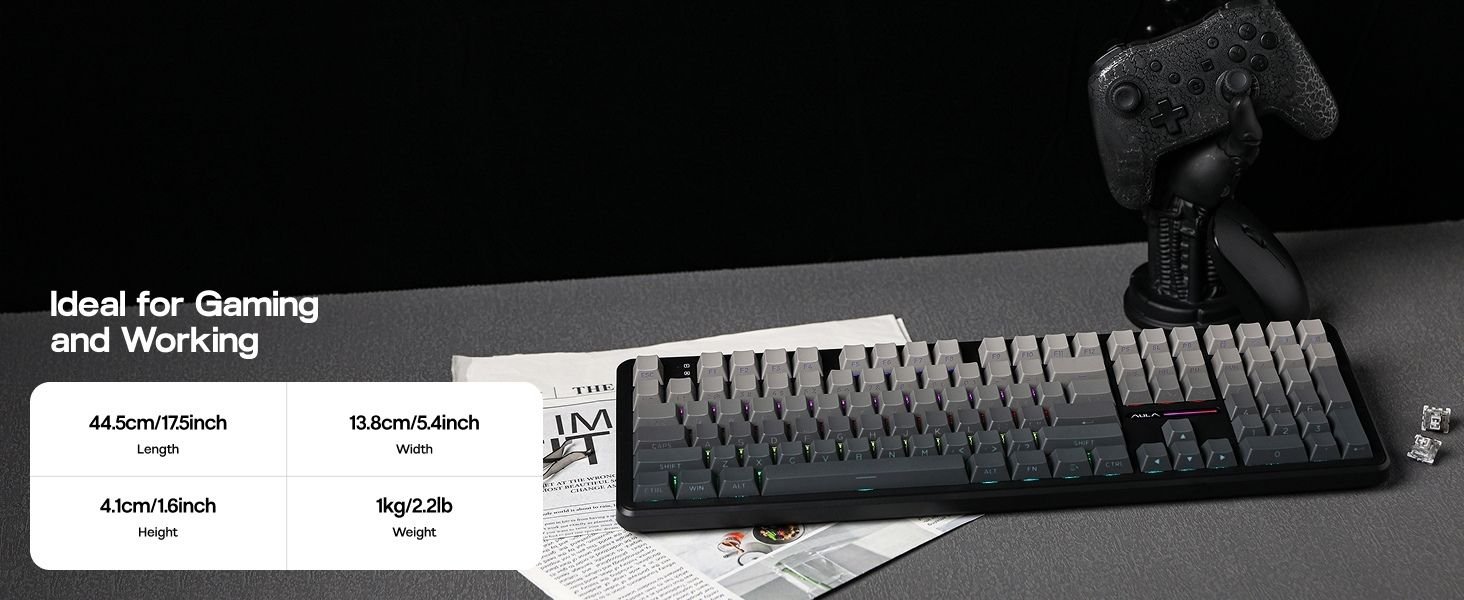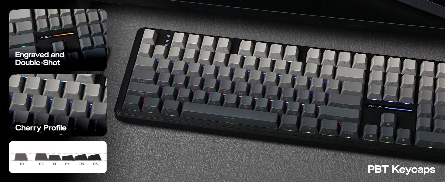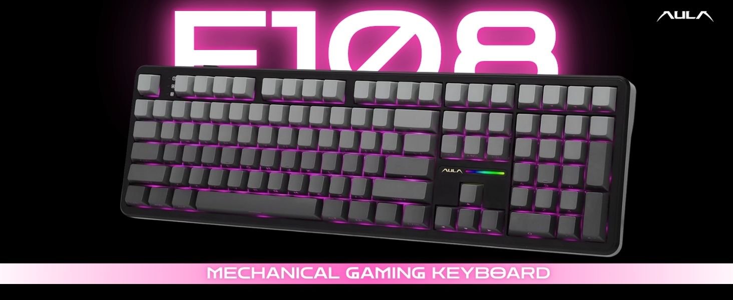 - 100% in Size, Performance and Comforts: Meet the 100% full size variation of the AULA F75, the F108 Mechanical keyboard that offers the same creamy sound and unparalleled performance as F75 but in upgraded full-size layout. The 108 anti-ghosting keys deliver accuracy and greater possibilities in configuration and control, which makes them ideal for multitasking and fast response in gaming and the office. While the 2-stage kickstand, low front height and cherry profile keycaps rid you of finger fatigue and wrist strain for a pain-free day of work