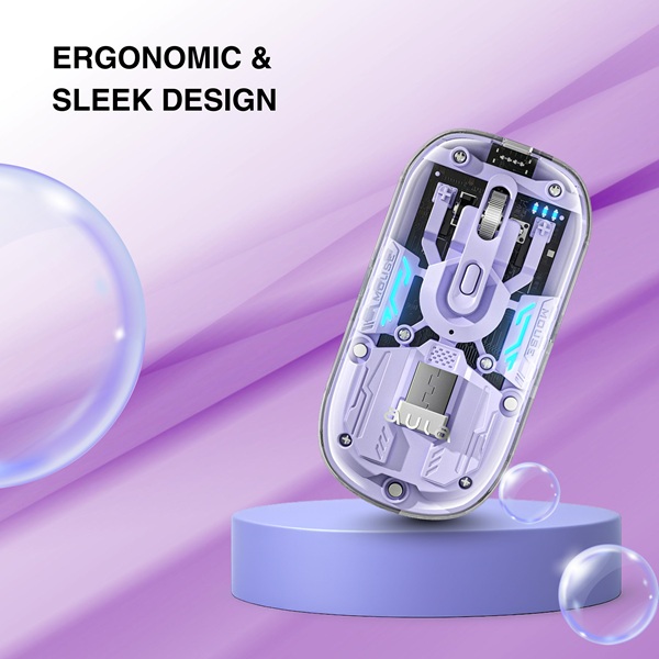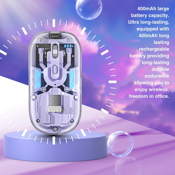 AULA AM210 Ultra-Lightweight (Wireless + Bluetooth) Gaming Mouse | Adjustable DPI (800-1600) | Compatible With Windows 2000/XP/Vista/8/10 | Purple (AM210Pr)