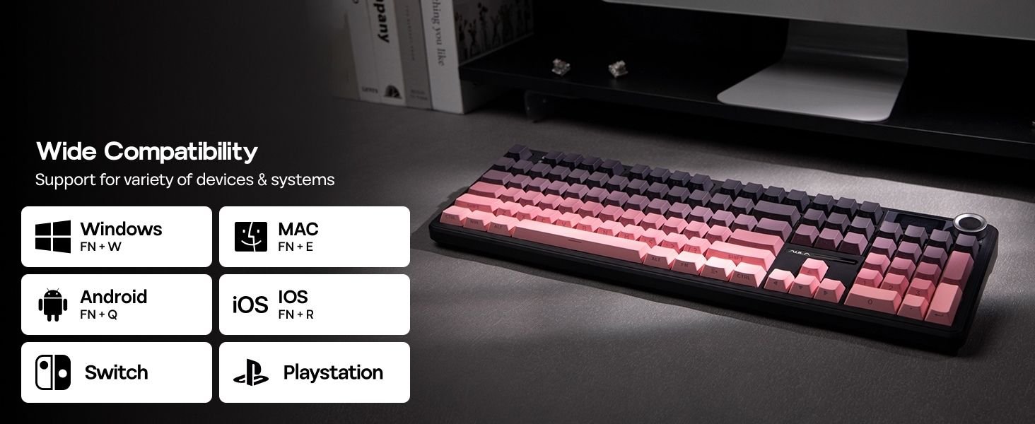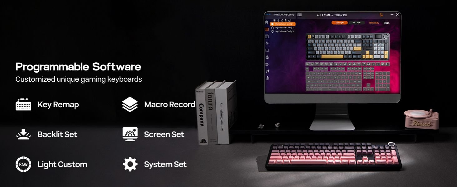- 【100% in Size, Performance and Comforts】 : Meet the 100% full size variation of the AULA F75 Max, the F108 PRO Mechanical keyboard that offers the same creamy sound and unparalleled performance as F75 Max but in upgraded full-size layout with customizable Screen. The 104 anti-ghosting keys deliver accuracy and greater possibilities in configuration and controlling, ideal for multitasking and fast response in gaming and office. While the 2-stage kickstand, low front height and cherry profile keycaps rid you of finger fatigue and wrist strain for a pain-free day of work.