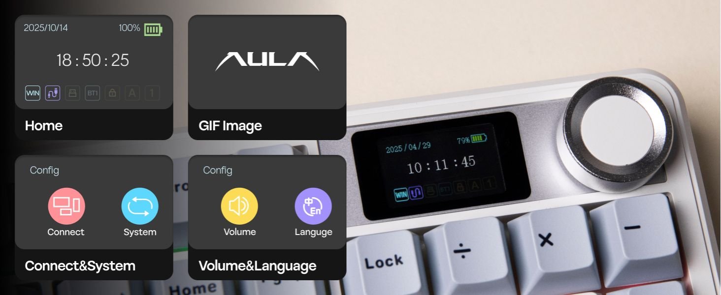 Elevate your setup with the AULA F108PRO Tri-Mode Wireless Mechanical Gaming Keyboard — a full-size 104-key powerhouse designed for gamers, creators, and professionals. Featuring hot-swappable Reaper linear switches, a vibrant 1.14” customizable LCD screen, and an ergonomic volume control knob, this keyboard combines high-performance typing with smart productivity tools.