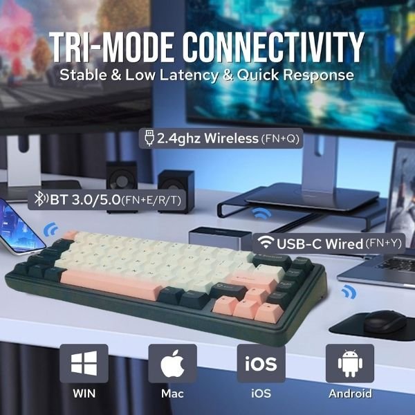 Stylish design, 67 key layout, Gasket structure, delicate and soft touch.