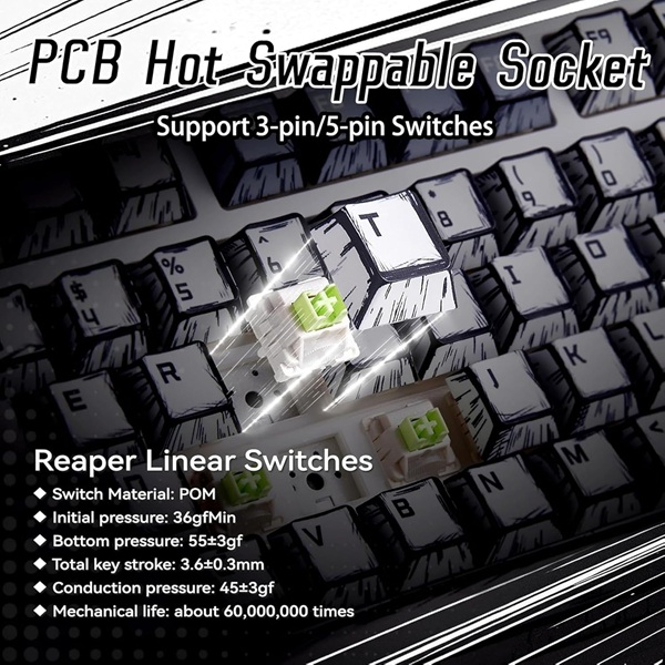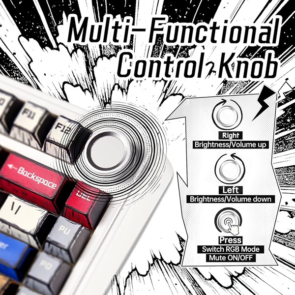 AULA F75 75% Wireless Trio Mode Mechanical Gaming Keyboard With Knob | Comic Keycap, Reaper Switch (F75CKR)