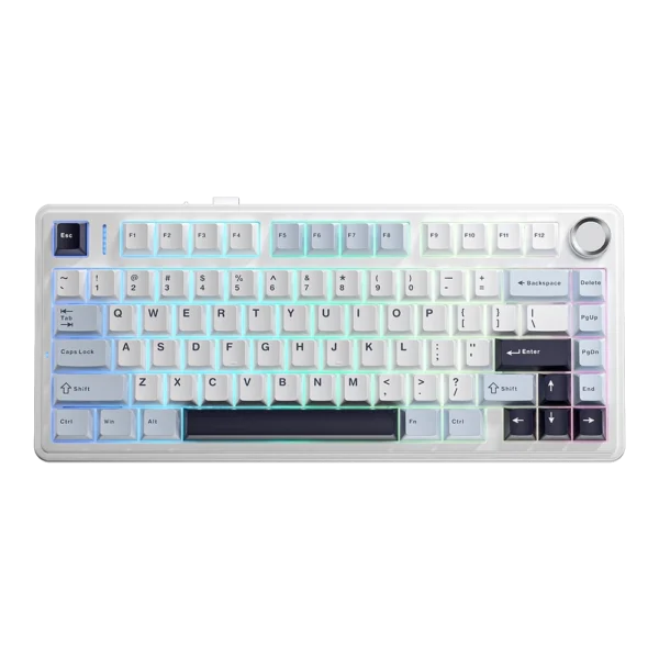 AULA F75 Tri-Mode 75% Wireless Mechanical Gaming Keyboard. Use the AULA F75 Tri-Mode to Power Your Performance 75% Wireless Mechanical Gaming Keyboard. AULA F75 is a compact 75% TKL mechanical keyboard built for professional gamers and creators. Feel its powerful performance. It uses 80 keys with pre-lubed hot-swappable Star Vector switches for a low-latency, smooth, responsive typing experience. The gasket-mounted design combined with PBT keycaps gives you great comfort and less noise while typing and gaming for long periods of time.