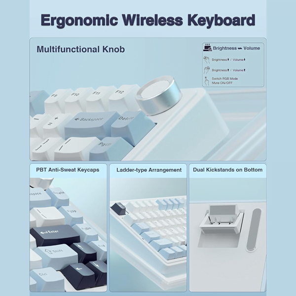 - 【Double-Shot PBT Manga Keycaps】: The F75 takes durability to the next level with its Cherry-profile double-shot PBT manga keycaps, ensuring a perfect blend of robustness and stylish design. These keycaps stand resilient against wear, maintaining a sleek appearance.