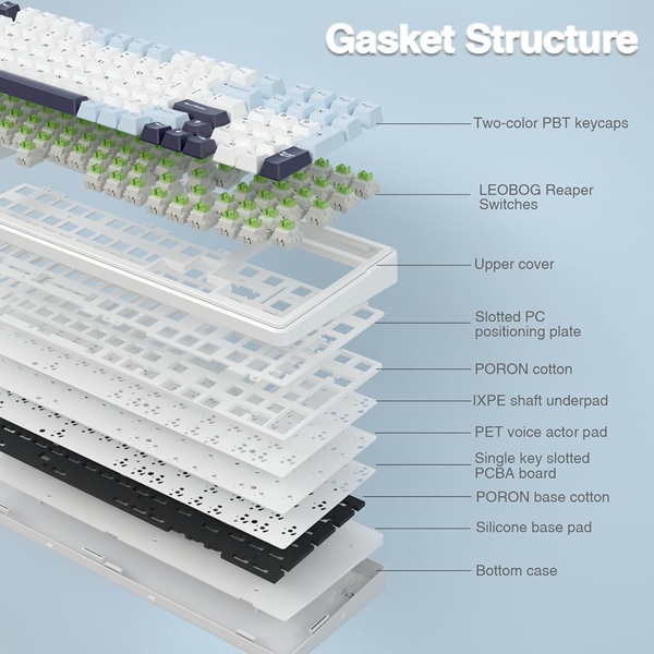 AULA F99 Tri-Mode (2.4G/Wired/BT) Hot Swappable RGB Wireless Full Size Mechanical Gaming Keyboard | Ice Blue, Reaper Switch (F99IUR)