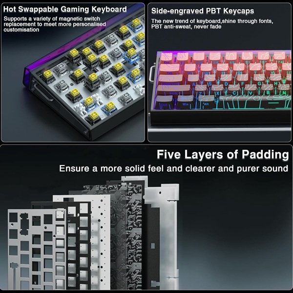 The keycaps and magnetic switches can be inserted and unplugged, allowing users to purchase personalized keycaps on the market for free DIY. They support popular magnetic switches on the market and can be used with mixed switches.