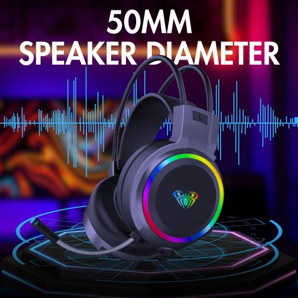 AULA S608 RGB Wired Gaming Headset With Adjustable Mic (Black)