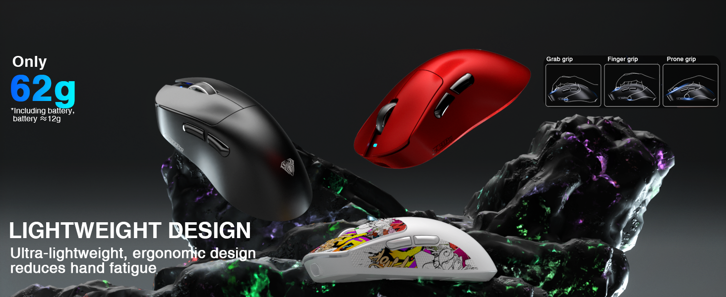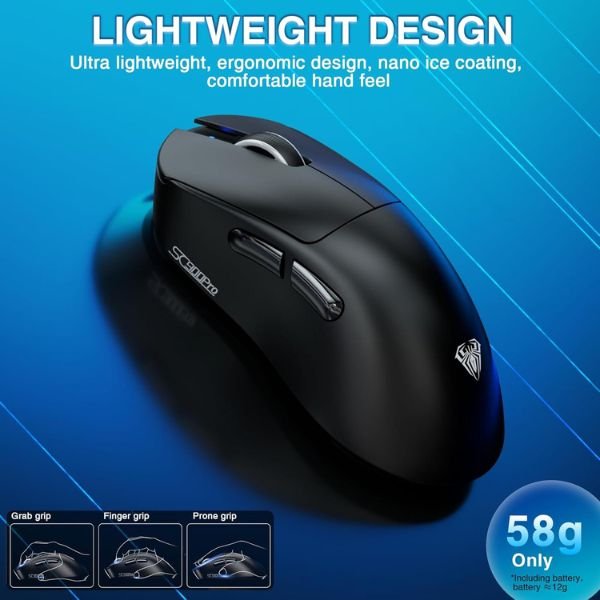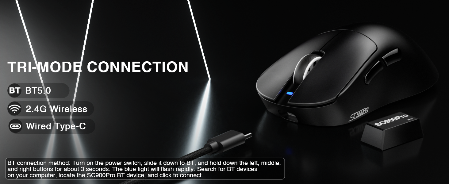 AULA SC900Pro Tri-Mode (2.4Ghz/Type-C/BT5.0) Ultra Lightweight 62g Wireless Gaming Mouse, PAW3395 Sensor, For PC/Mac/Linux | Black (SC900ProB)