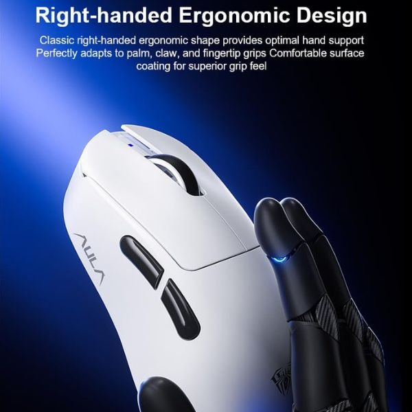AULA SC900 Pro Wireless Gaming Mouse — Experience ultimate precision and performance with this tri-mode gaming mouse supporting Type-C, 2.4G wireless, and Bluetooth 5.0 connections. Powered by the flagship PAW3395 sensor, it delivers up to 26,000 DPI, 50G acceleration, and 650 IPS tracking speed for unmatched accuracy and responsiveness during intense gaming sessions. The dual 8000Hz polling rate ensures lightning-fast response with near-zero latency in wired or 2.4G mode, while optical switches rated for 100 million clicks provide ultra-fast actuation and long-lasting durability. Designed for endurance, the SC900 Pro comes with two replaceable 400mAh batteries for continuous power and a lightweight 62g body that keeps your wrist comfortable during long hours of gameplay. Fully customizable through dedicated software, you can set macros, DPI levels, RGB lighting, and polling rates to match your playstyle. Compatible with Windows, Mac, and Linux, this professional-grade gaming mouse blends performance, comfort, and style — perfect for esports, FPS, and everyday use.