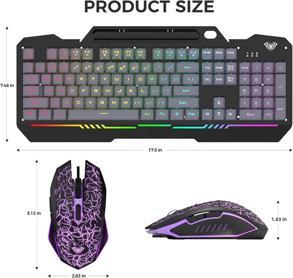 AULA T102 Full Size Wired Membrane Gaming Keyboard and Mouse Combo | Black Panel, Grey Keycaps (T102Gr)