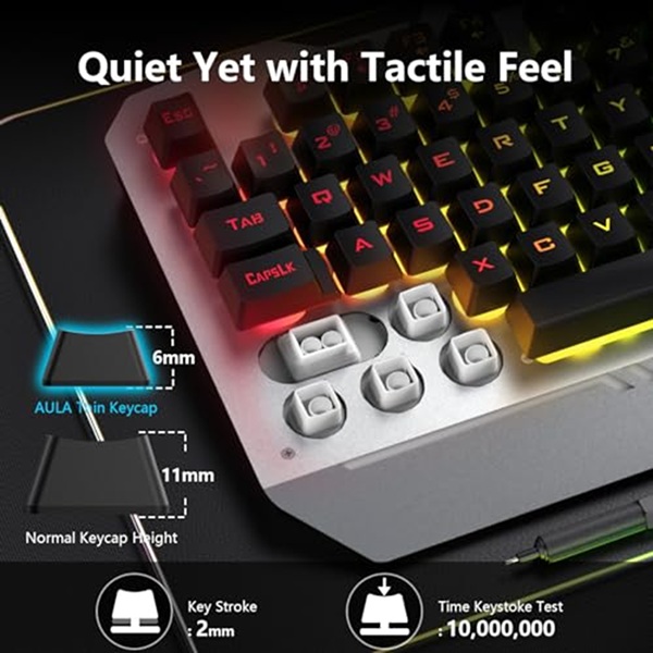 The keyboard keys are responsive and feel very good, with a life span of more than 10 million keystrokes and durable.
