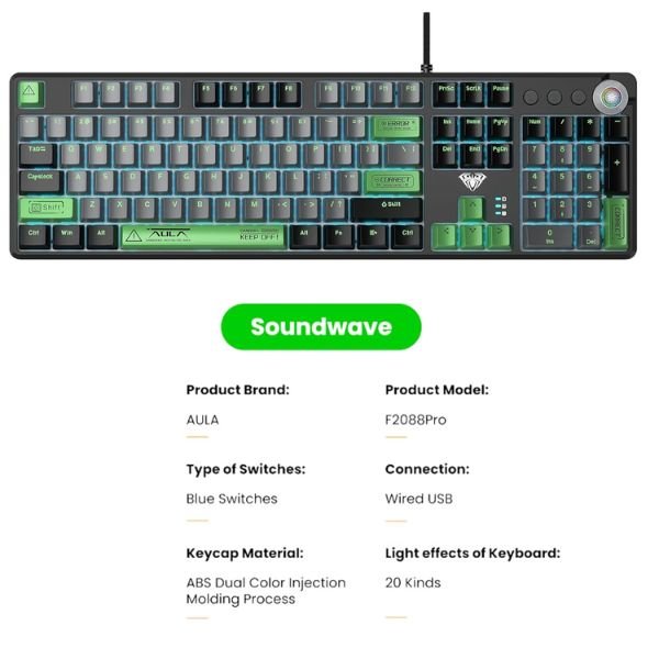 Refurbished AULA F2088Pro Wired Mechanical Keyboard Green Black (R-F2088Pro BGrG)