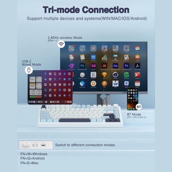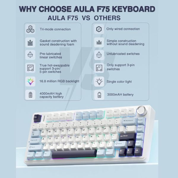 Refurbished AULA F75 3in1 Mechanical Keyboard Ice Blue | Reaper Switch (R-F75IUR)