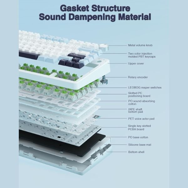 Stylish design, 80 key layout, Gasket structure, delicate and soft touch.