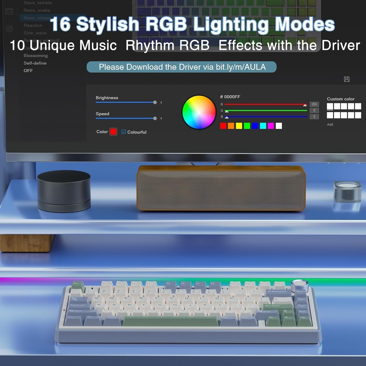 Refurbished Aula F75 75% Three-Mode Mechanical Gaming Keyboard With Knob | Cedar Green Ice Vein Switch (R-F75CGV)