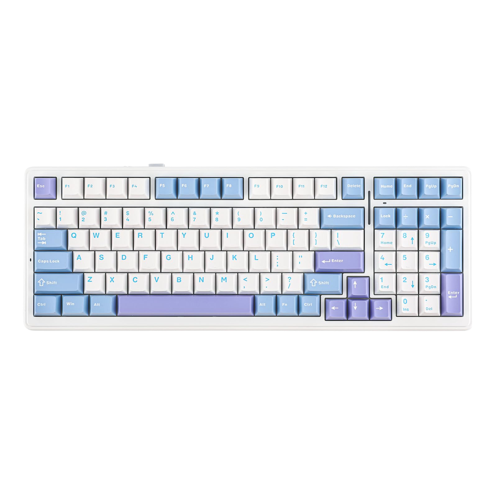 Refurbished AULA F99 Three Mode Mechanical Gaming Keyboard Blue+White, Gray wood Switch (R-F99UWW)