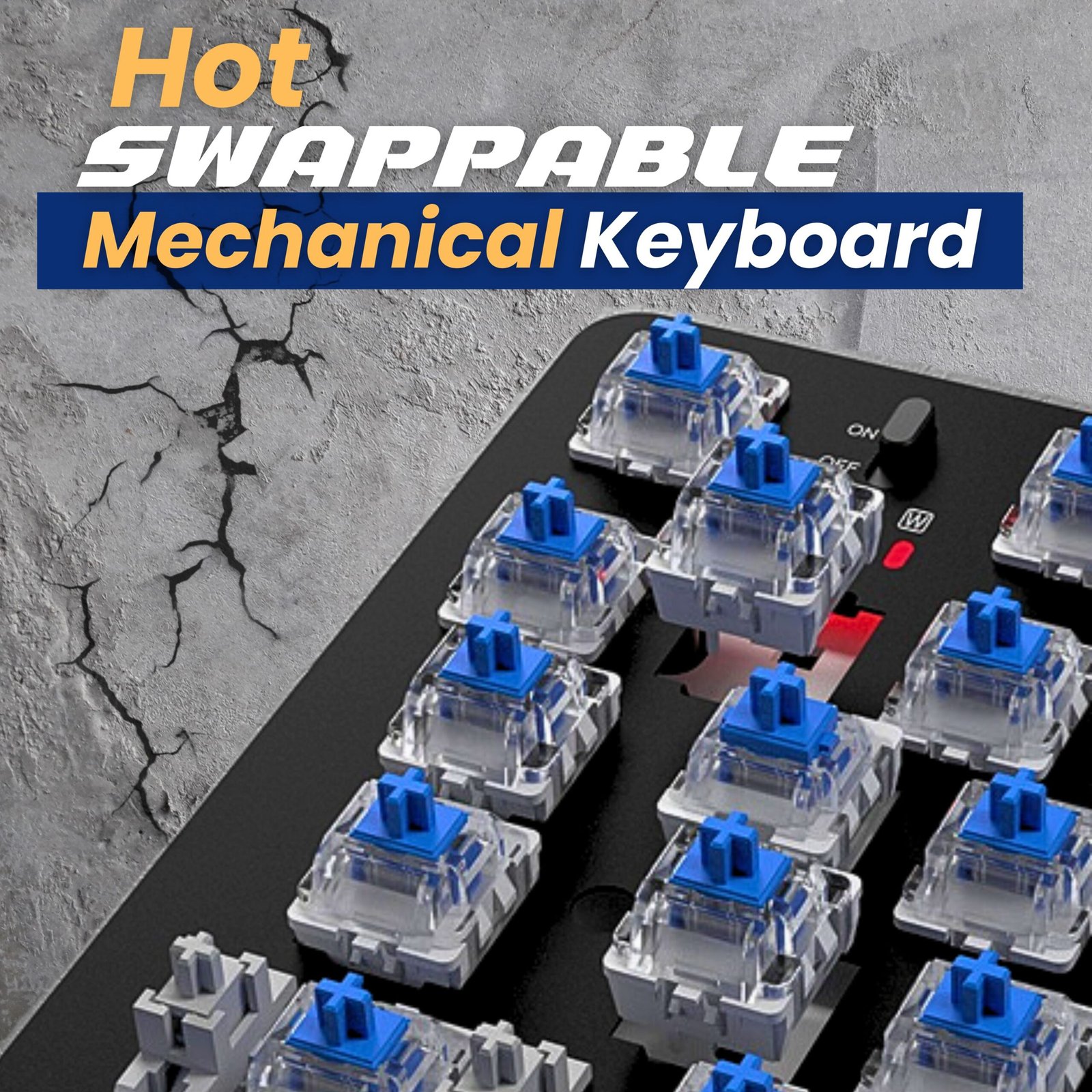 Hot-swappable mechanical switch design, 50 million keystrokes life, durable and excellent feel.
