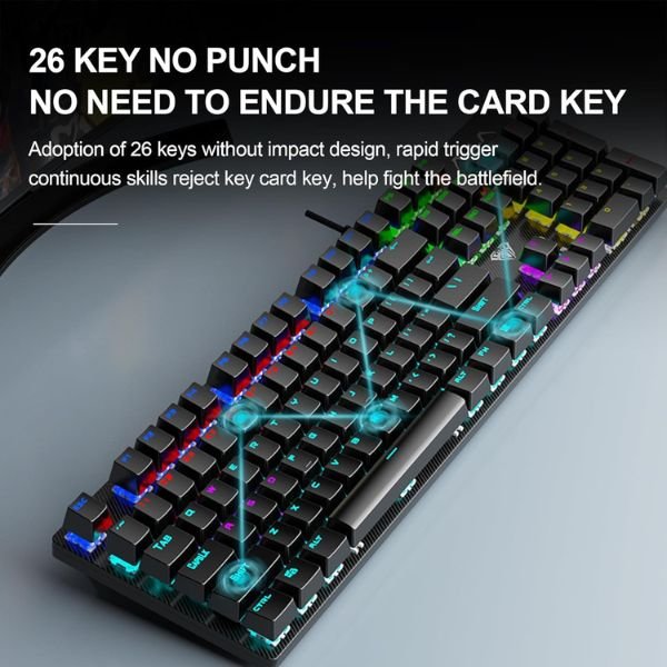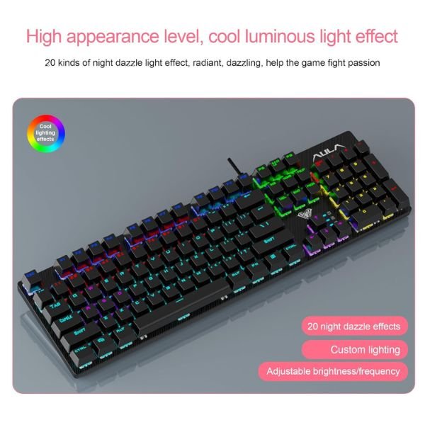 Refurbished AULA S2022B Wired Mechanical Gaming Keyboard | Black, Blue Switch (R-S2022B)