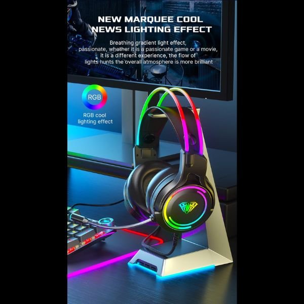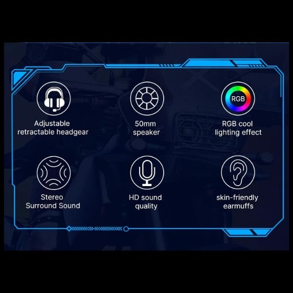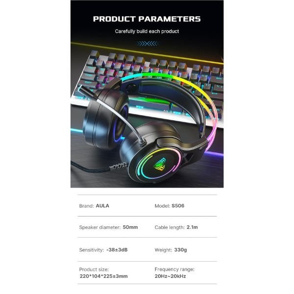 Introducing our premium gaming headset, designed to enhance every aspect of your gaming journey. With customizable RGB lighting effects, elevate your gaming setup with vibrant colors that add an extra layer of style to your melodious experience. Experience audio like never before with powerful 50mm speaker drivers, delivering deep bass and crisp highs that pull you into the heart of the action. Communication is key in gaming, and our headset ensures crystal clear communication with its adjustable microphone. Featuring a sensitivity of 38 +- 2dB, your voice will be heard loud and clear by teammates and adversaries alike. Immerse yourself in high-quality sound with a wide frequency response range of 20Hz – 20kHz, ensuring every detail of your game’s audio comes to life with stunning clarity. Designed for comfort, our headset boasts an ergonomic lightweight design weighing only 330g +- 5g, reducing fatigue during those marathon gaming sessions and allowing you to stay focused on the game. Plus, enjoy the freedom of movement with a convenient 2.1m cable length, providing flexibility without restrictions. Elevate your gaming experience with our feature-packed headset, where style meets performance for the ultimate gaming immersion.