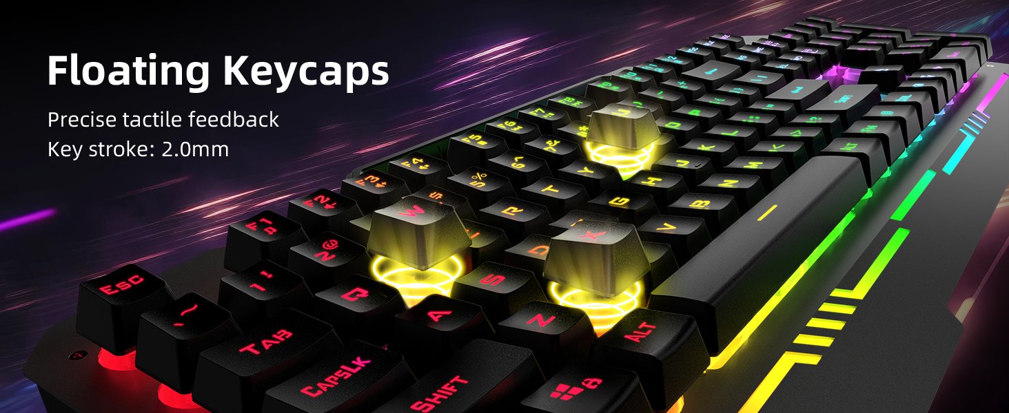- 🎮🏆🎮【COMFORTABLE TYPING FEELING】: Made of an aluminum alloy brushed panel, this pc gaming keyboard and mouse combo is sturdy and durable. The ergonomic design of both rgb keyboard and mouse releases your hands from fatigue. 2.0mm keystroke offers fast trigger efficiency and rebound speed, which will bring you a fabulous typing feeling typing experience