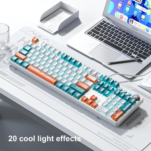 Refurbished Aula F2088Pro Wired Mechanical Keyboard White+Orange+Blue | Blue Switch (R-F2088Pro WOB)